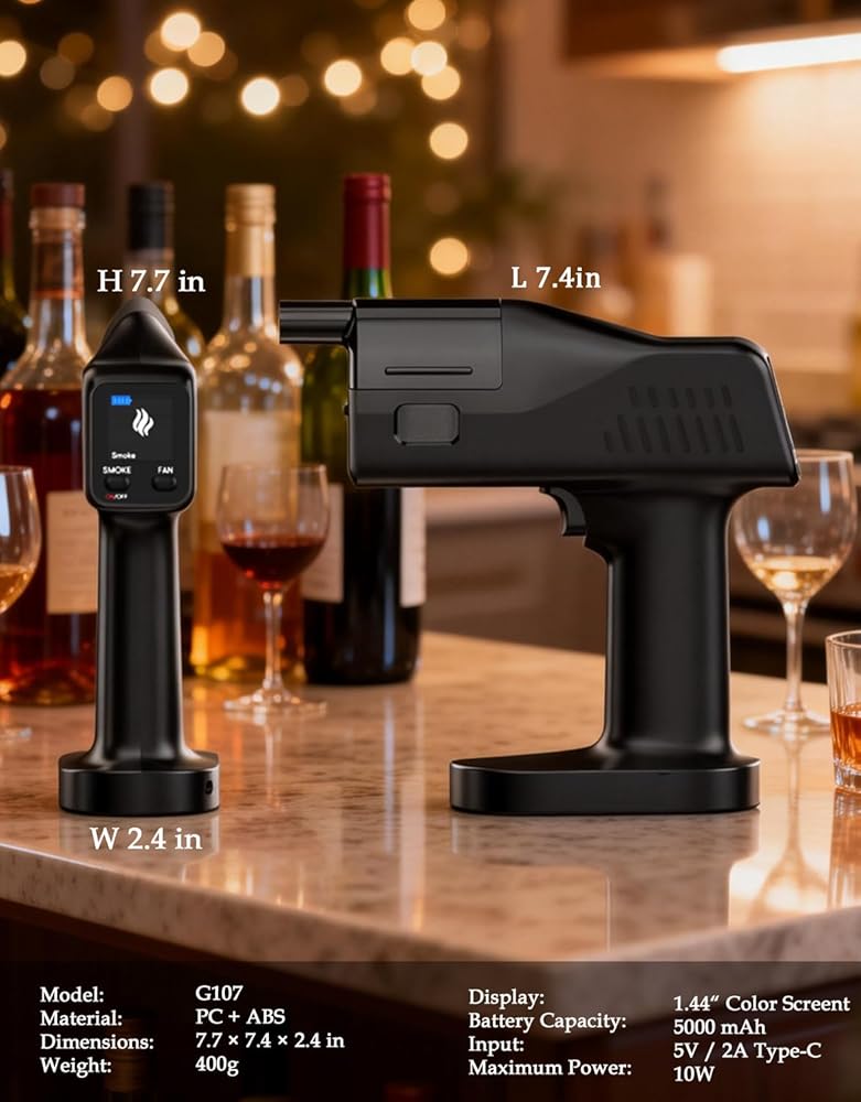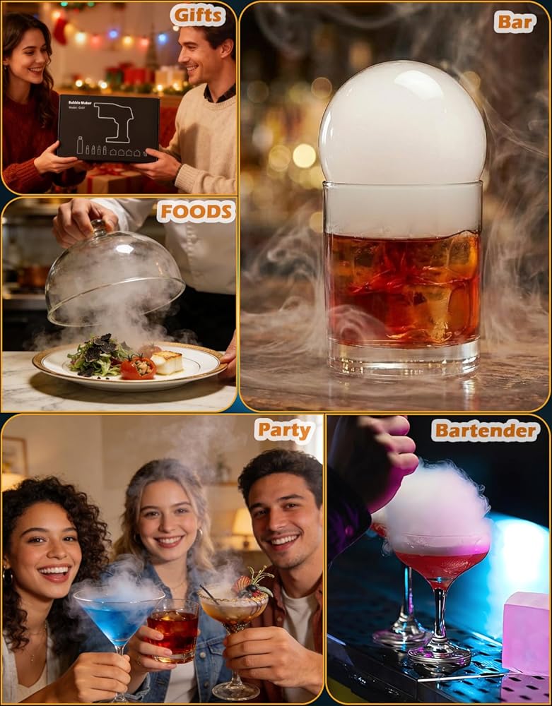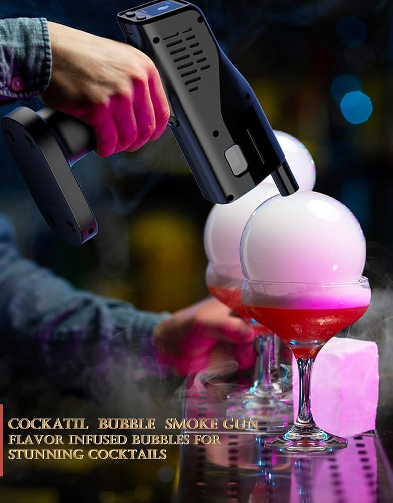 Cocktail Bubble Smoke Gun - Adds Flavor & Visual Effect to Drinks & Food, Dual Modes, Color Display, Rechargeable 5000mAh, Ideal for Home, Bars, Parties & Gifts