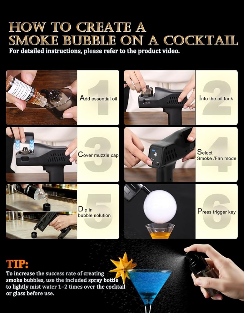 Cocktail Bubble Gun Kit Accessories, Includes 4 Lemon Flavor Aroma Oils (10 ml Each) and 4 Oil Containers
