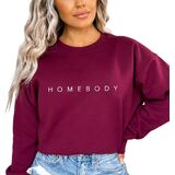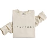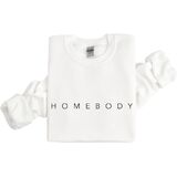 Embrace comfort and style with this cozy HOMEBODY sweatshirt. The soft fabric and relaxed fit make it perfect for lounging at home or binge watching your favorite shows. The simple minimalist yet chic design features the text 'HOMEBODY' printed across the front, adding a touch of personality. Pair it with your favorite joggers or jeans for a casual, effortless look. With its versatility and warmth, this sweatshirt is a must-have in your wardrobe. Available in a range of sizes and colors to ensure the perfect fit and style. ***We are a small business running through the Amazon Handmade program. All items purchased from our shop are CUSTOM MADE TO ORDER. Because of this, we are UNABLE TO ACCEPT RETURNS***