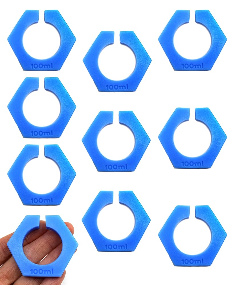 100 ml, Hexagonal ABS shape protective collar for measuring cylinders. Prevent an overturned cylinder from rolling off surface. Pack of 10 protectors.