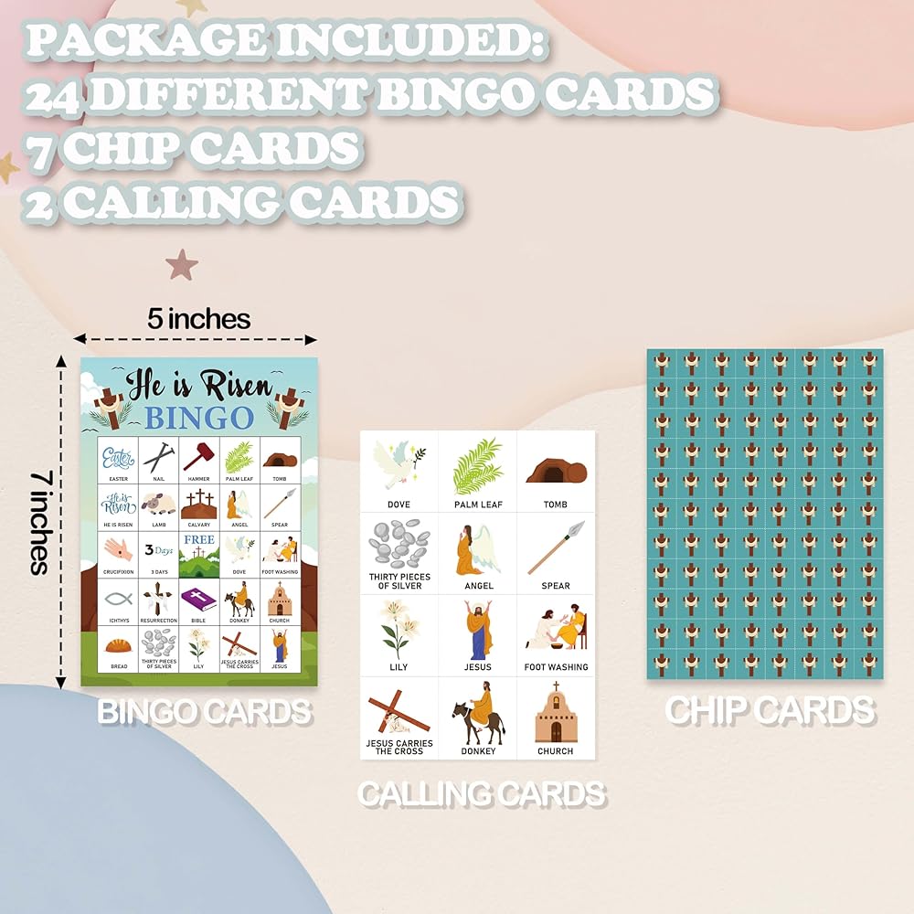 Unique Design: The exquisite bingo games adopt unique design, Bright colors and clear religious imagery (inspired by “He is Risen”) stay vibrant, ensuring repeated use for years of Easter joy.