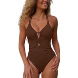 This one-piece swimsuit features exudes sophisticated warmth, perfectly balancing elegance and vacation-ready charm.