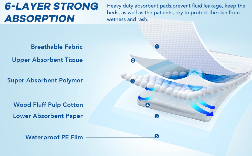 💧 Heavy-Duty Absorbency for Maximum Comfort and Protection: Designed with advanced multi-layer technology, these disposable underpads provide superior absorbency to keep beds, furniture, and surfaces dry. Perfect for changing pads, incontinence care, post-surgery recovery, or pet training, they ensure comfort and hygiene for users of all ages.