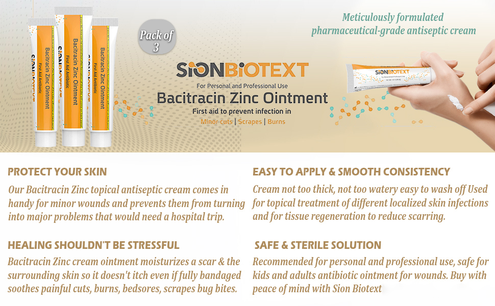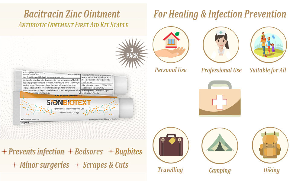 - ACTIVE INGREDIENT: Bacitracin Zinc 500 units per gram; smooth ointment format for easy, targeted first aid application.
