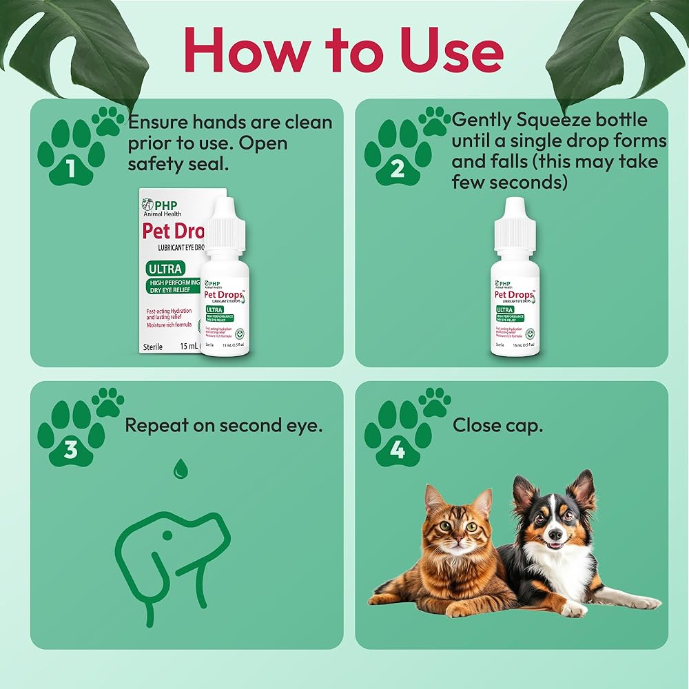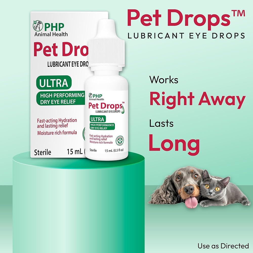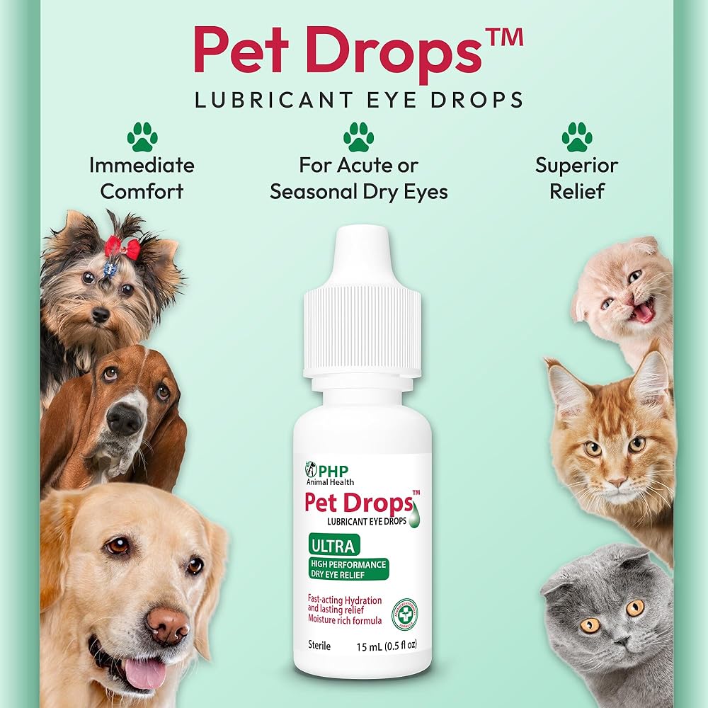 Ultra Lubricant Pet Drops 15 ml - Eye Drops for Cats and Dogs - Moisture Rich Formula, Fast Acting Hydration Dogs Eye Drop for Dry Eyes, Artificial Tears for Extra Dry Eye (U.S Made)
