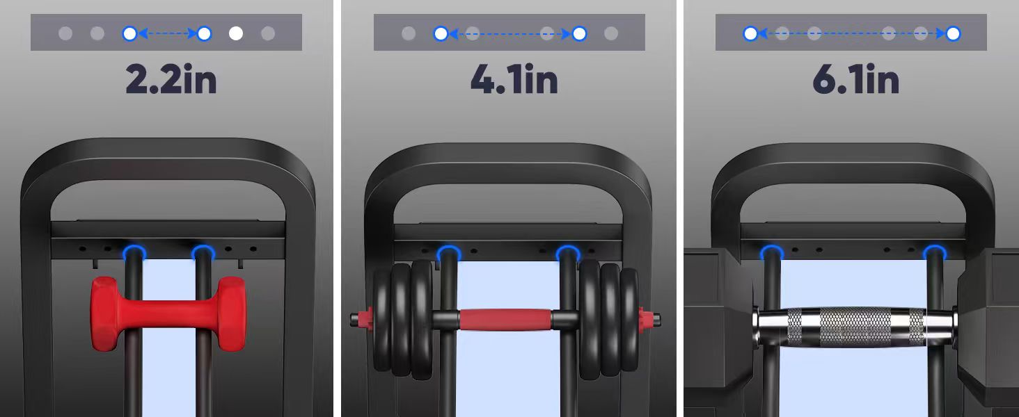 Variable Width: This weight rack for home gym is designed with an adjustable width mechanism, offering optimal storage solutions for a wide variety of fitness equipment. This weight stand features 3 adjustable width settings ranging from 2.2 inches to 4.1 inches and up to 6.1 inches. The flexible design of this 3 tier dumbbell rack stand helps maximize your space efficiency while keeping workout gear neatly organized and easily accessible.