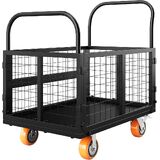【Maneuverability Meets Safety】This platform truck cart with Cage have adopted a plug-in design, making the connection between the cart panel and the handrails more stable. Engineered with four 6-inch heavy-duty wheels, all 4 wheels with 360-degree swivel functionality for impeccable control and safety in high-traffic environments.