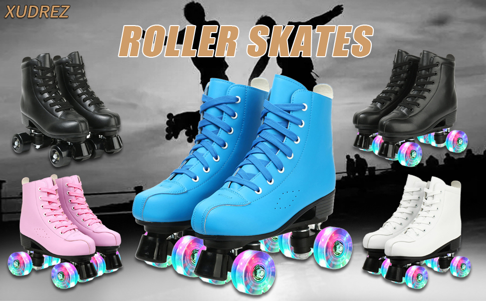XUDREZ Roller Skates, Double-Row Roller Skates for Unisex, Roller Skates PU Leather High-top Roller Skates Shiny Roller Skates