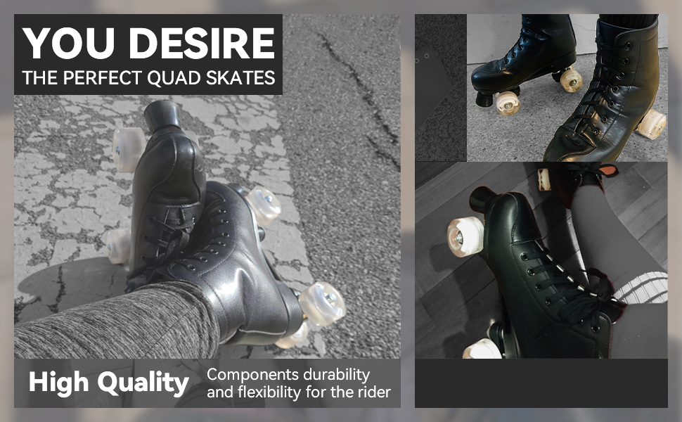 ❤【Wheels with ABEC 5 bearings】Wheels with ABEC 5 bearings: Both men's and women's roller skates are equipped with ABEC 5 bearings, and the upper's ecological leather perfectly complements the entire concept of these four-wheel skates.
