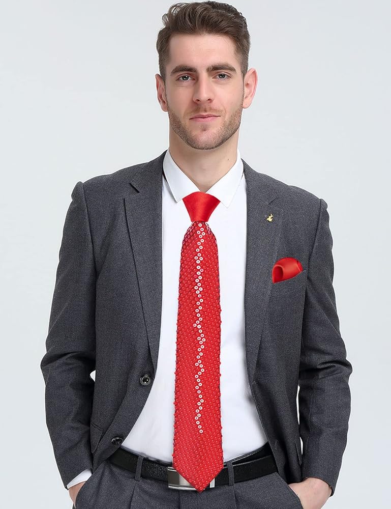 ✨【Package Contains】Men's Sequin Tie + Pocket Square. Suitable for wedding, banquet, birthday, fancy party, prom. Also a perfect holiday gift for family, lovers and friends.