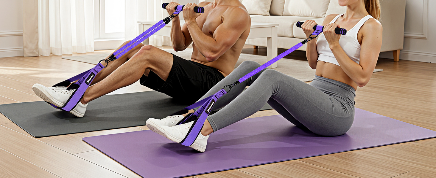 【WORKOUT EQUIPMENT SUITABLE FOR FULL BODY EXERCISE】 Unlock many of exercises with this multifunction pedal resistance band with handle, This fashion puller exercise tool is not just for sit-ups, it's a complete body resistance bands workout trainer. Use this pedal puller exercise bands can quickly burn belly fat, enhance ab definition, and accelerate workout recovery. Effectively target abs, arms, chest, back, glutes, and legs for fat burning, muscle sculpting and physical therapy.