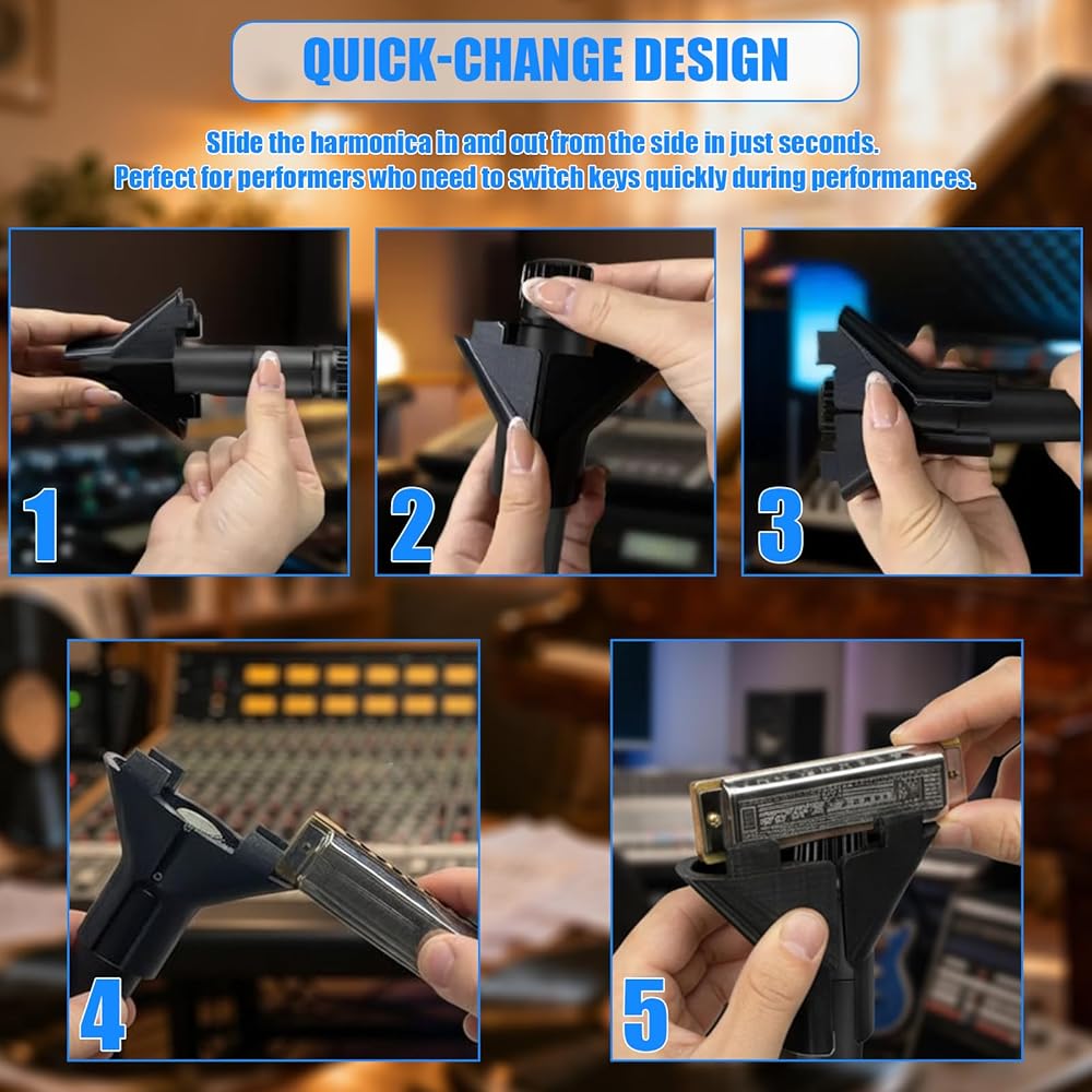 DITCH THE UNCOMFORTABLE NECK RACK: Experience total freedom of movement on stage or in the studio. This innovative mic-mounted holder eliminates the neck strain, fatigue, and awkward posture associated with traditional wire harmonica racks. It is the ultimate hands-free accessory for singing guitarists, keyboard players, and one-man bands.