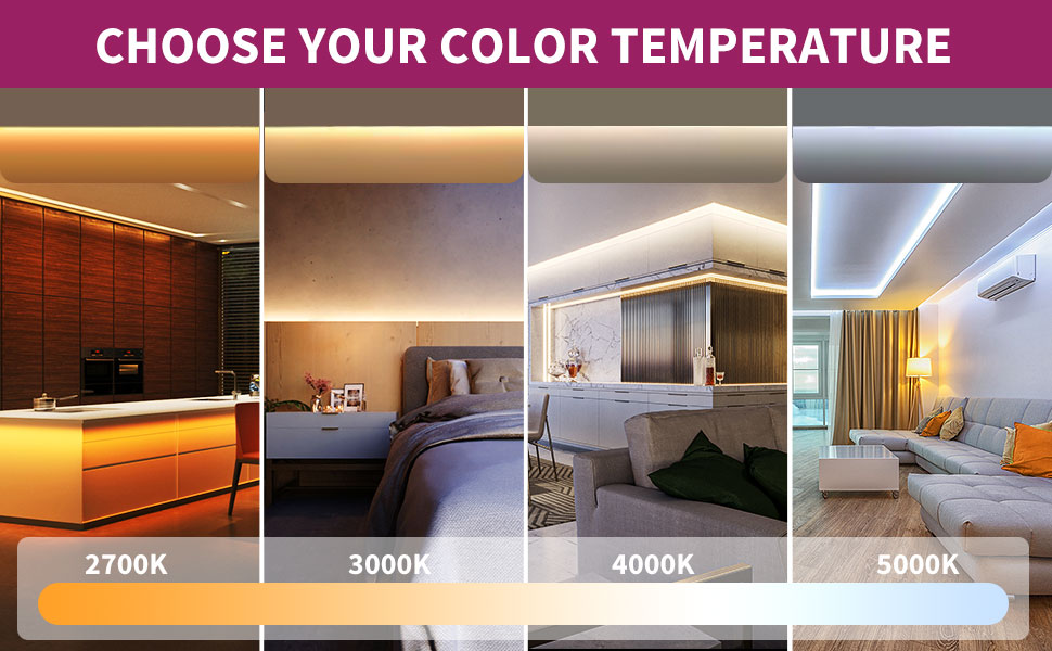 These strips are installed in a wide variety of applications including, General accent lighting, Under cabinet lighting, Above cabinet lighting, Toe kick lighting, Shelving lighting, Back lighting, Bathroom and bedroom lighting, Ambient lighting, Cove lighting, Awning and eave lighting, Bar and restaurant lighting, Pathway lighting, Hotel lighting.