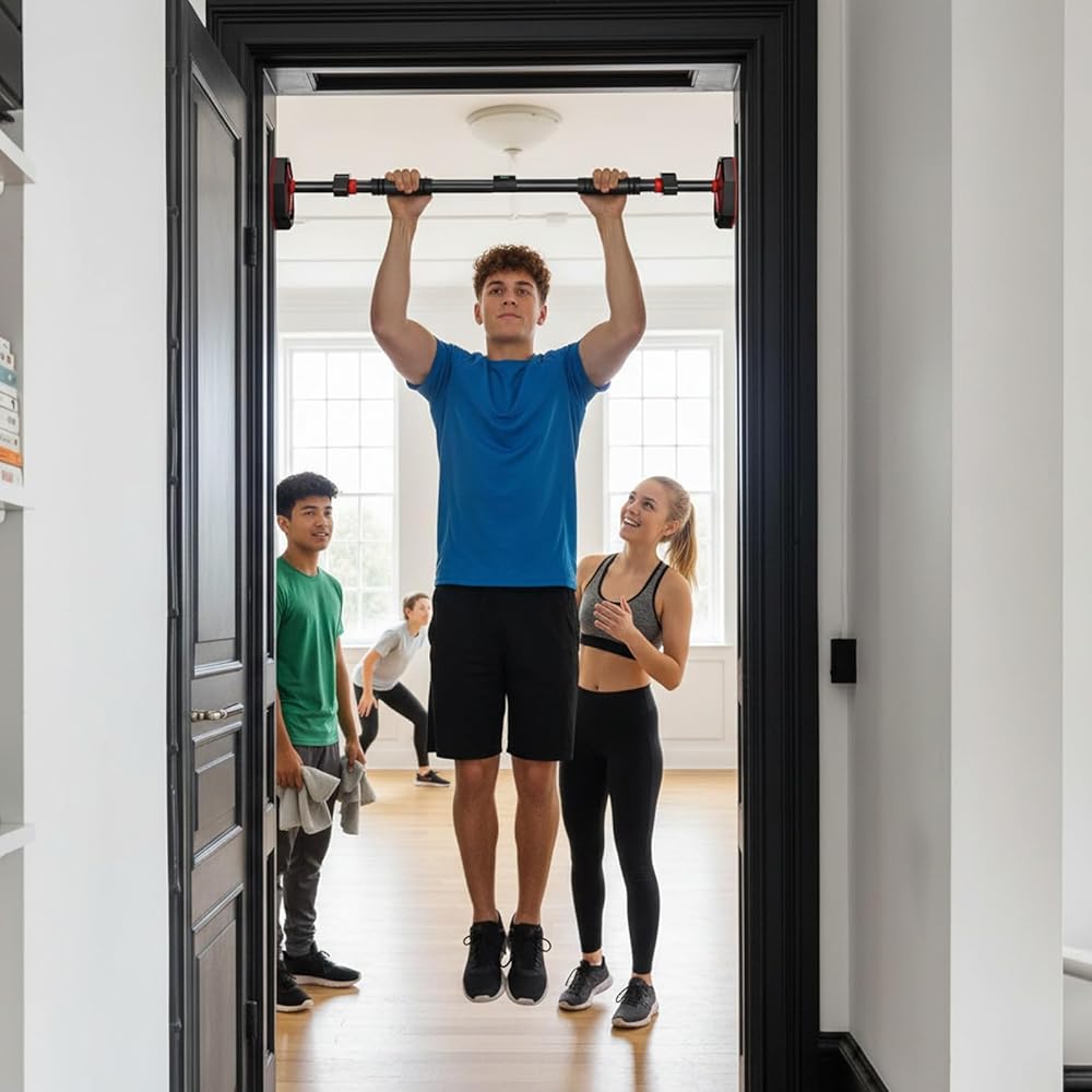 Multi-Functional Home Gym Equipment Train your entire body with this door frame pull up bar! Perfect for pull-ups, push-ups, sit-ups, leg raises, and stretching. A versatile pullup bar doorway for strength training and flexibility in compact spaces.