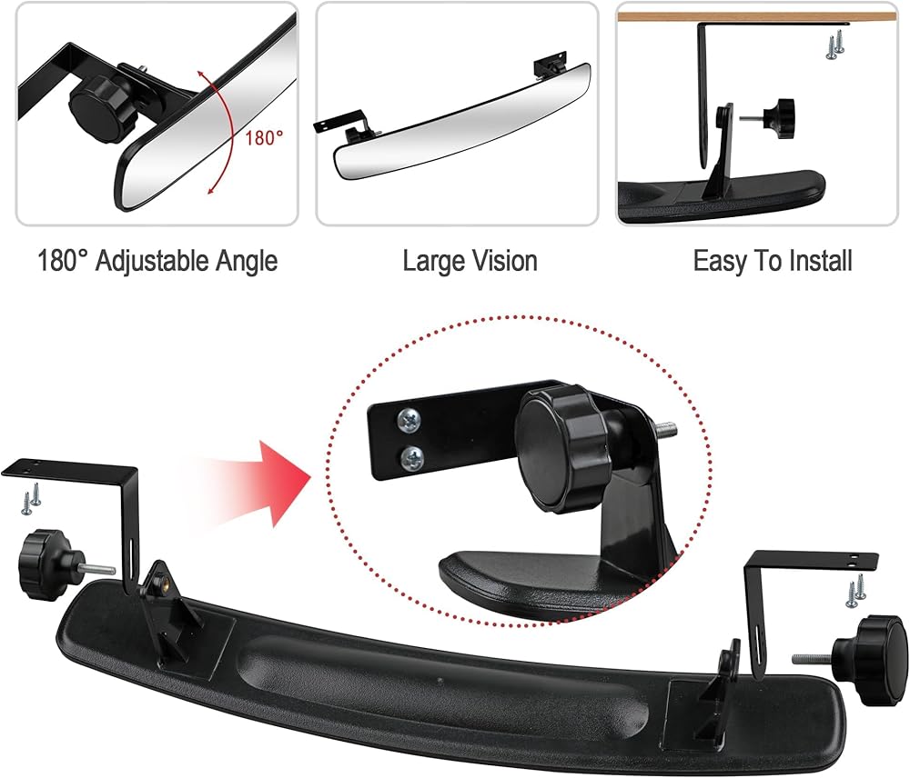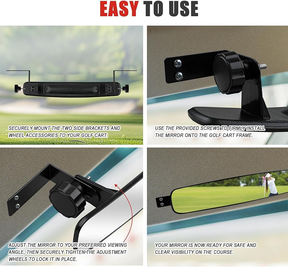 ✅【Durable & Universal Fit】 Crafted from high-impact ABS housing and shatter-proof tempered glass, this mirror is built to last. It comes with a sturdy iron bracket and is engineered to fit most golf cart models, including EzGo, Yamaha, and Club Car.