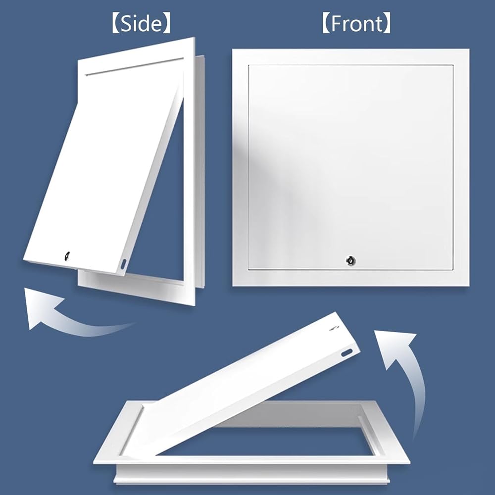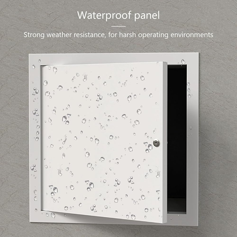 Sturdy Access Panel: Crafted with an Aluminum Alloy Frame and Galvanized Panel for Enhanced Durability and Weather Resistance. This Access Panel effectively conceals Pipes and Lines, providing secure protection and convenient access. Perfect for Home Improvement projects, it seamlessly integrates into various settings while ensuring reliable functionality and strength.