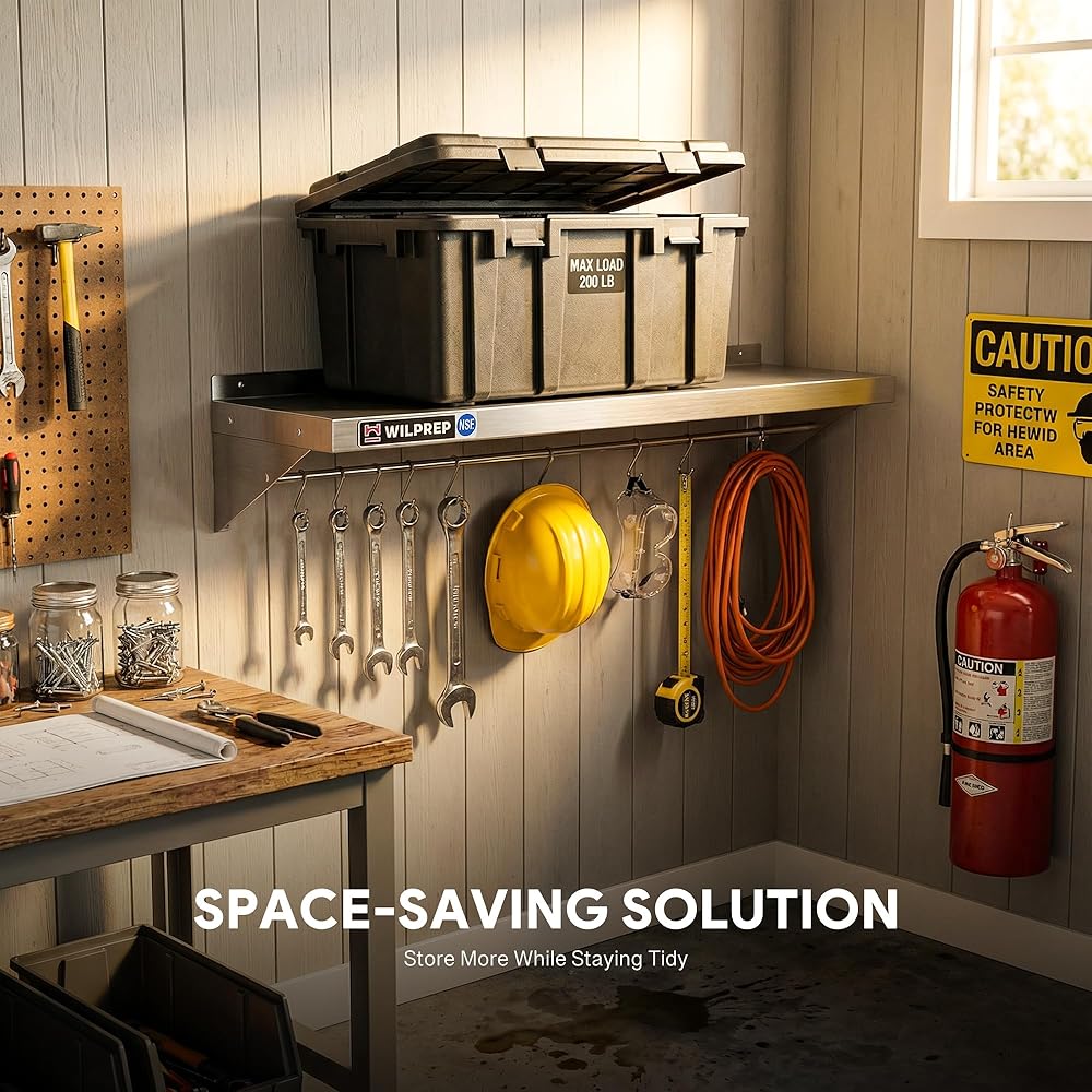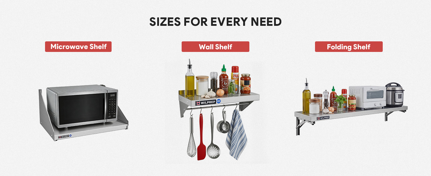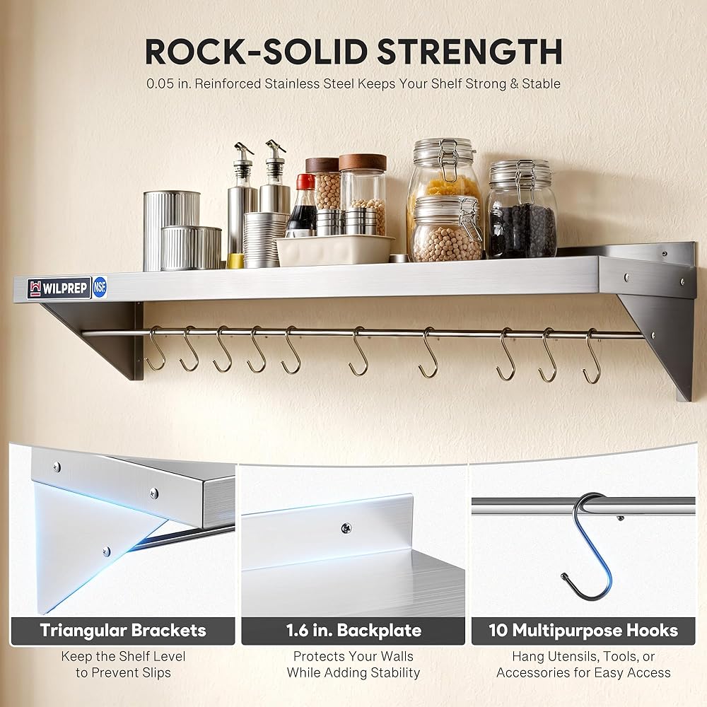 Maximize Every Inch: Wilprep's 12x48 in. shelf is designed to free up counter and wall space while securely holding heavy kitchen tools or small appliances. Clear countertops instantly for a neat, organized, and efficient workspace