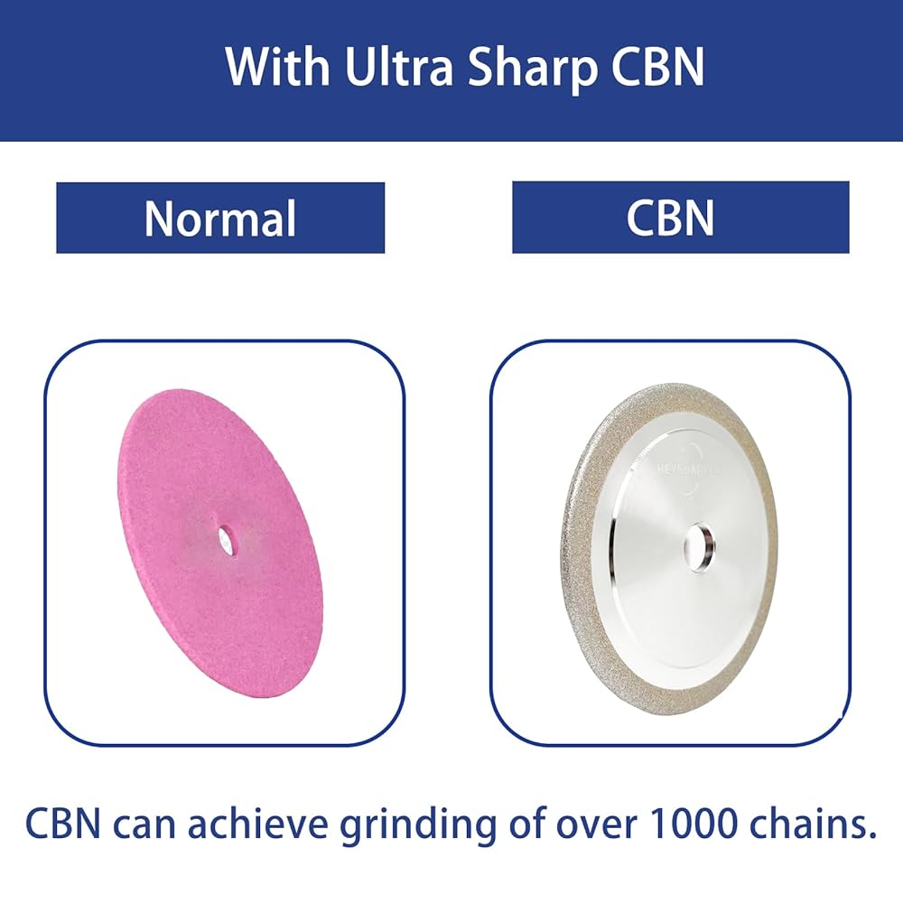 【Super Sharp CBN】: Using CBN instead of ordinary grinding wheel can increase your efficiency several times and can grind more than 1000 chains