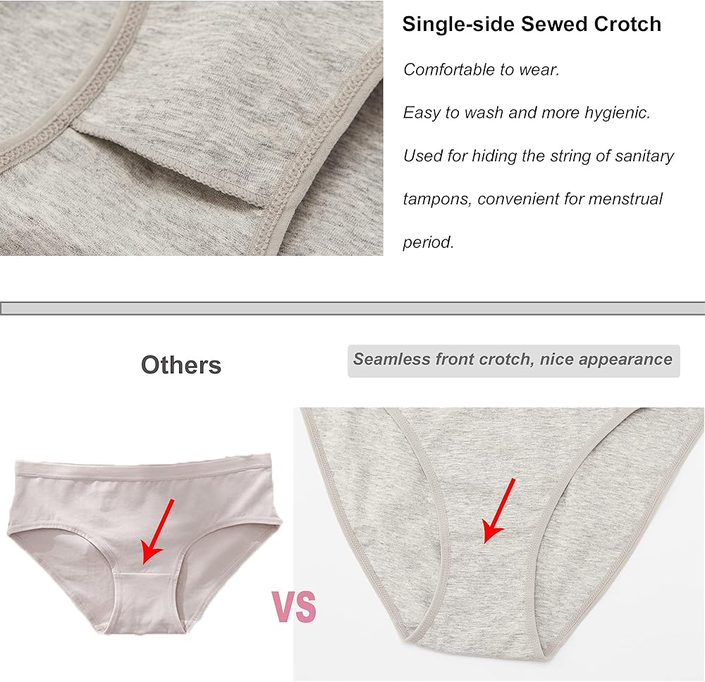 ONE-SIDE SEWED CROTCH:The crotch of these women's underwear packs is sewed on only one side, with an easy to wash design. At the same time, those ladies underwear are one whole piece from front to back. A double layer cotton crotch gives under parts the most soothing care and comfort.