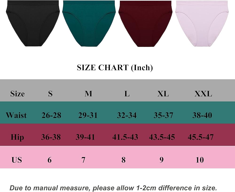 FINE MATERIAL COMFY FABRIC: Our women's briefs are made from 95% cotton plus 5% Spandex high quality fabric, which both provides a breathable feeling and high elasticity at the same time. No matter which color you choose, these cotton panties for women will show your confidence in the best way.