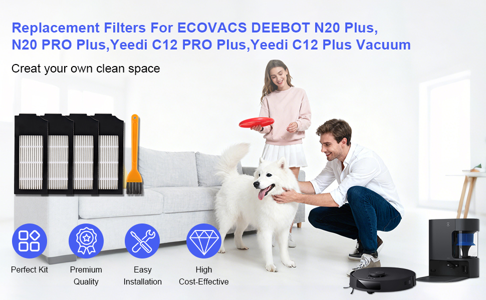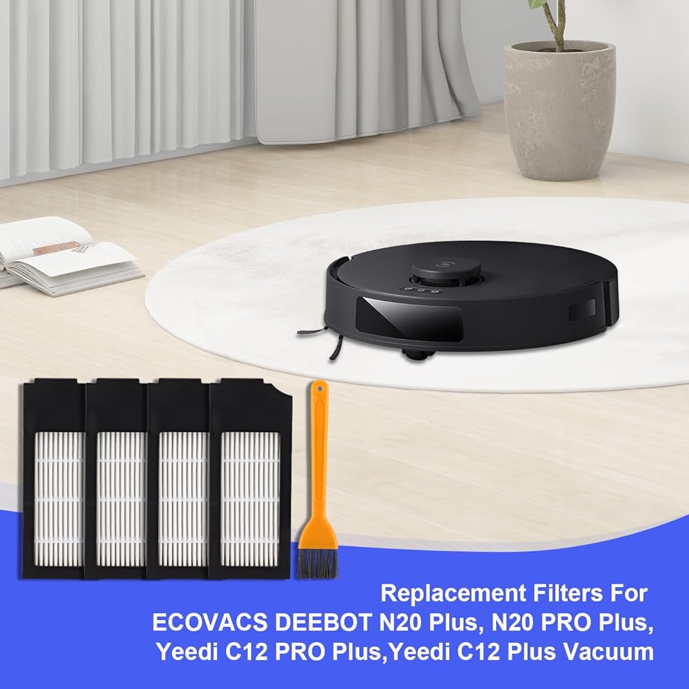 【Replacement & Maintenance】 This kit includes 4 quality filters for easy replacement. For best results, replace filters every 6-12 months (depending on usage and environment). Using these Yeedi C12 Pro Plus/C12 compatible filters helps ensure your robot vacuum maintains consistent performance, supporting cleaner surfaces and reduced particle buildup in your home.