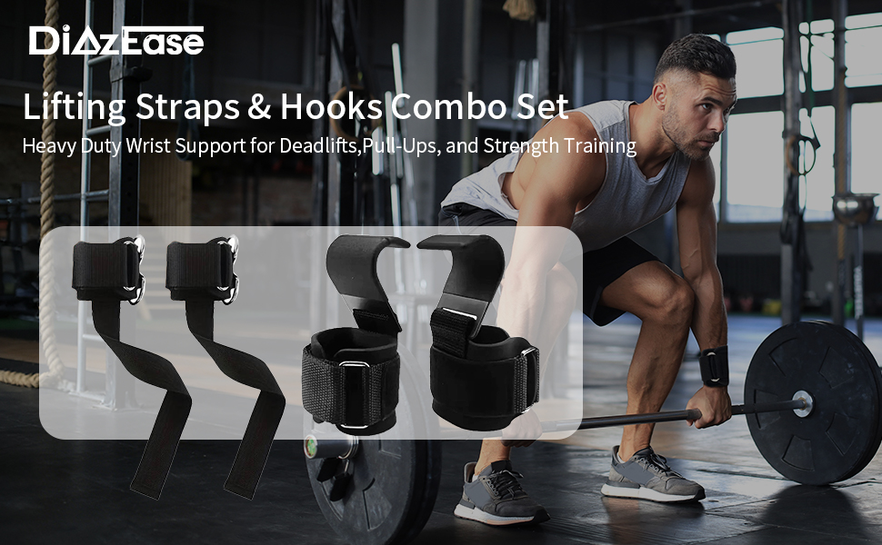 【COMPLETE LIFTING SET】: Lifting Straps+Lifting Hooks(Pair) in One Pack Tired of buying lifting hooks and wrist straps separately? Our complete set includes both hooks and lifting straps, so you have the right tool for every weightlifting session. These versatile gym straps work for all lifts and provide reliable wrist support for any training goal.
