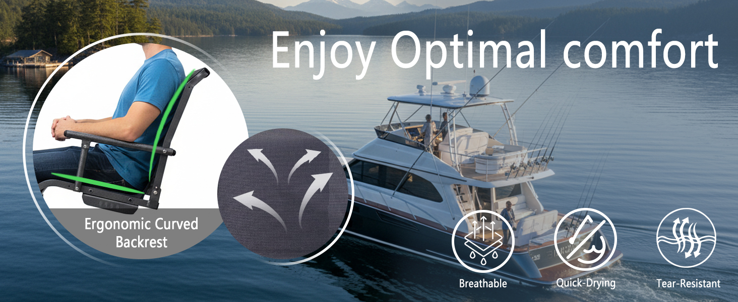 Quick-Drying Fabric:The boat chair features premium TechMesh fabric, provide great support for your back. The breathable mesh promotes water drainage and quick drying, keeping the seat comfortable in all weather conditions