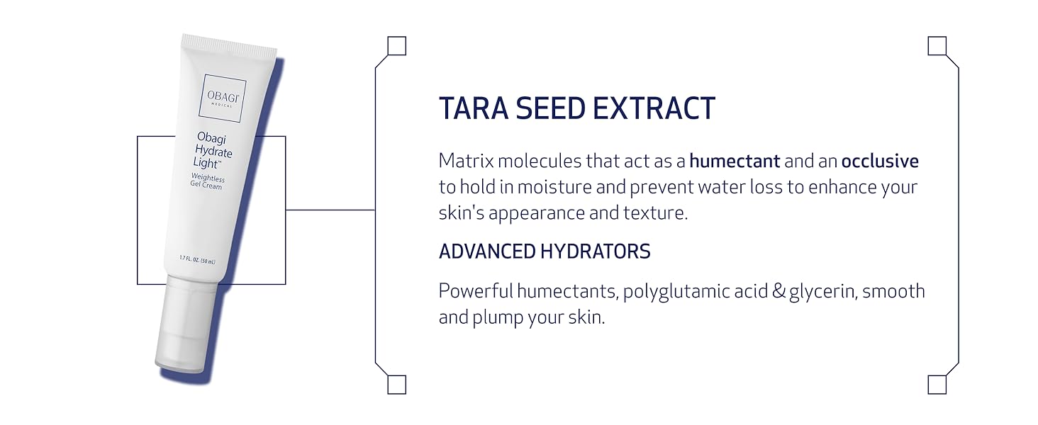 Clinically Proven: 94% of participants agreed Obagi Hydrate Light felt lightweight on their skin, and 95% of participants agreed their skin looked healthy and felt nourished in a 2023 in-use study; data on file at Obagi Cosmeceuticals LLC