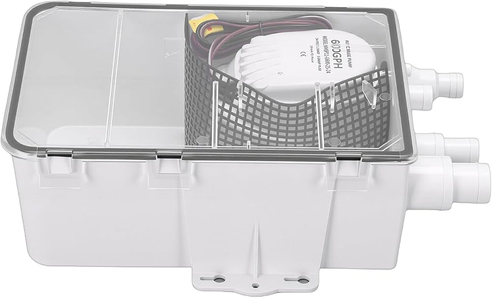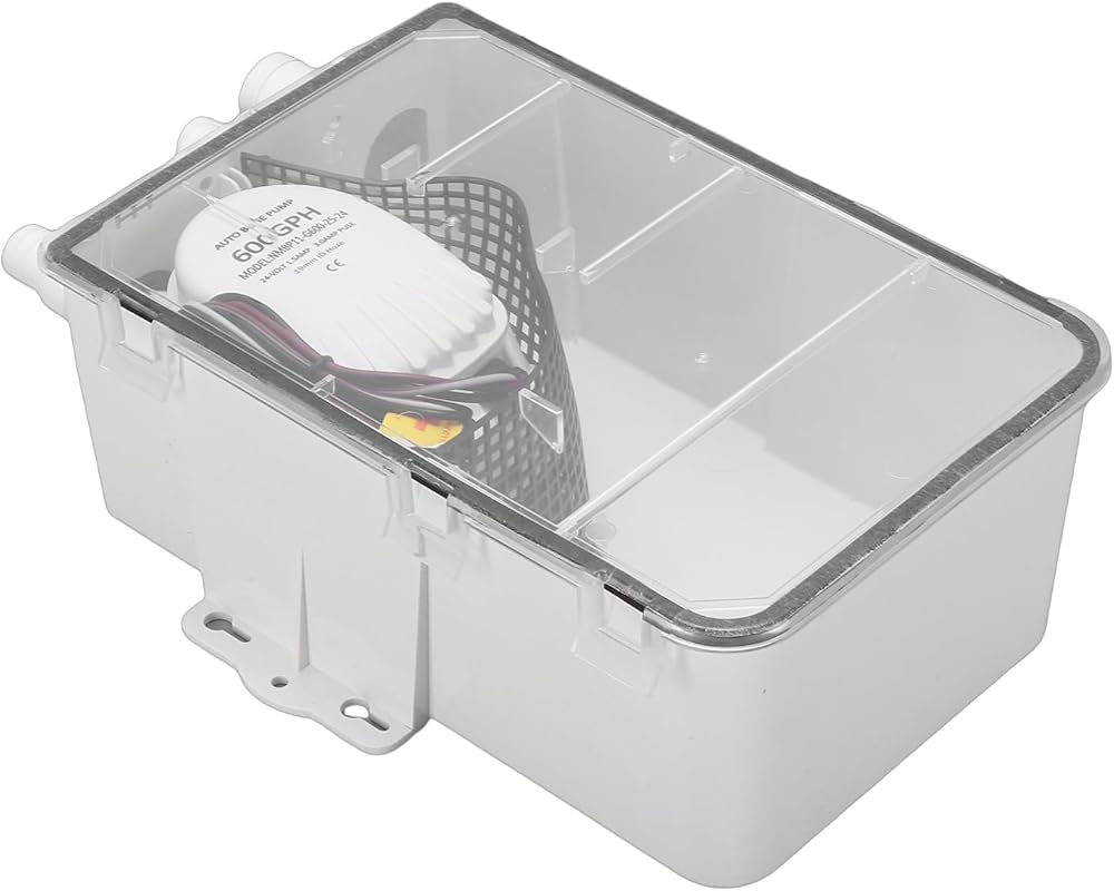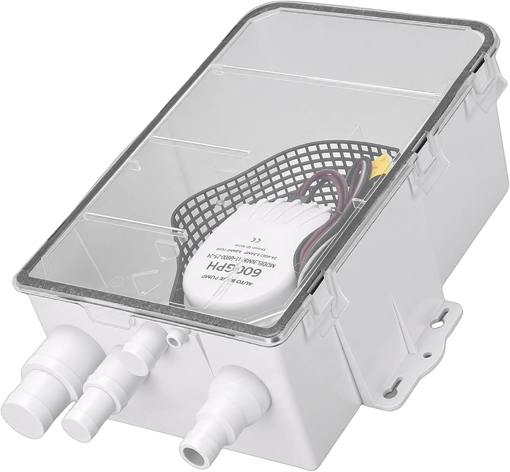 Powerful Drainage Capability: Equipped with a 24V DC electric motor, this shower sump pump box boasts an impressive drainage capacity of up to 600 GPH. Quickly remove excess water from your boat's cabin.