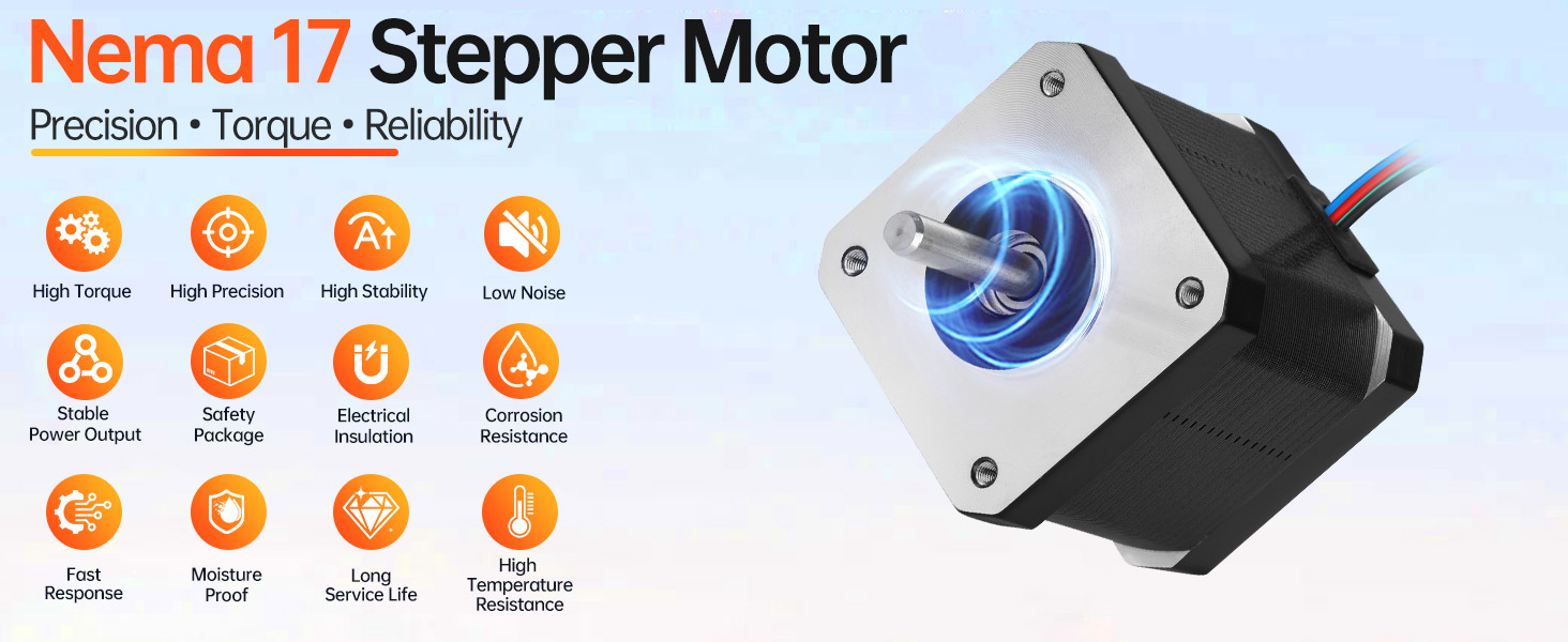 High Torque Low Noise: Engineered for minimal noise interference, our enhanced Nema 17 Step Motor boasts up to 20% greater holding torque through its higher-grade steel core construction and optimized winding technique. Experience smoother machine cycles with less surrounding disruption.
