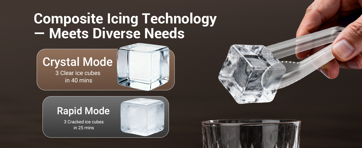 Adjustable Ice Size: The clear large ice cube maker produces 5 sizes of cubes—from thick to thin to meet diverse beverage needs. Start customizing your signature ice
