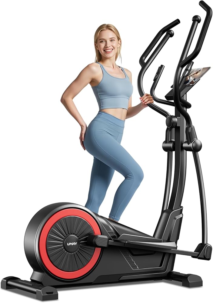 CURSOR FITNESS Elliptical Machine, Elliptical Exercise Machine for Home with Hyper-Quiet Magnetic Driving System, Elliptical Trainer with 15.5IN Stride & LCD Monitor, 100% Levels Resistance