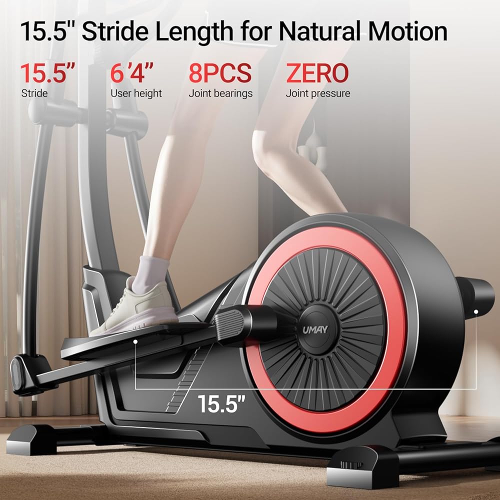 Joint-Friendly Design: Protect your knees and hips while you exercise. The optimal 15.5-inch stride length and circular motion trajectory perfectly mimic your natural walking or running gait. This low-impact design significantly reduces stress on your joints, making it ideal for recovery or long-term fitness. The large textured pedals prevent slipping, while the thickened steel tube frame provides rock-solid stability, supporting users up to 300 lbs for maximum safety and durability