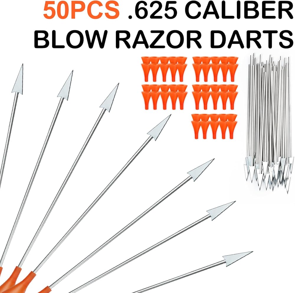 50PCS .625 Caliber Blow Razor Darts for All .625 Big Bore Caliber Blowguns, Razor Darts for Practice, Birds, Rats, and Small Prey