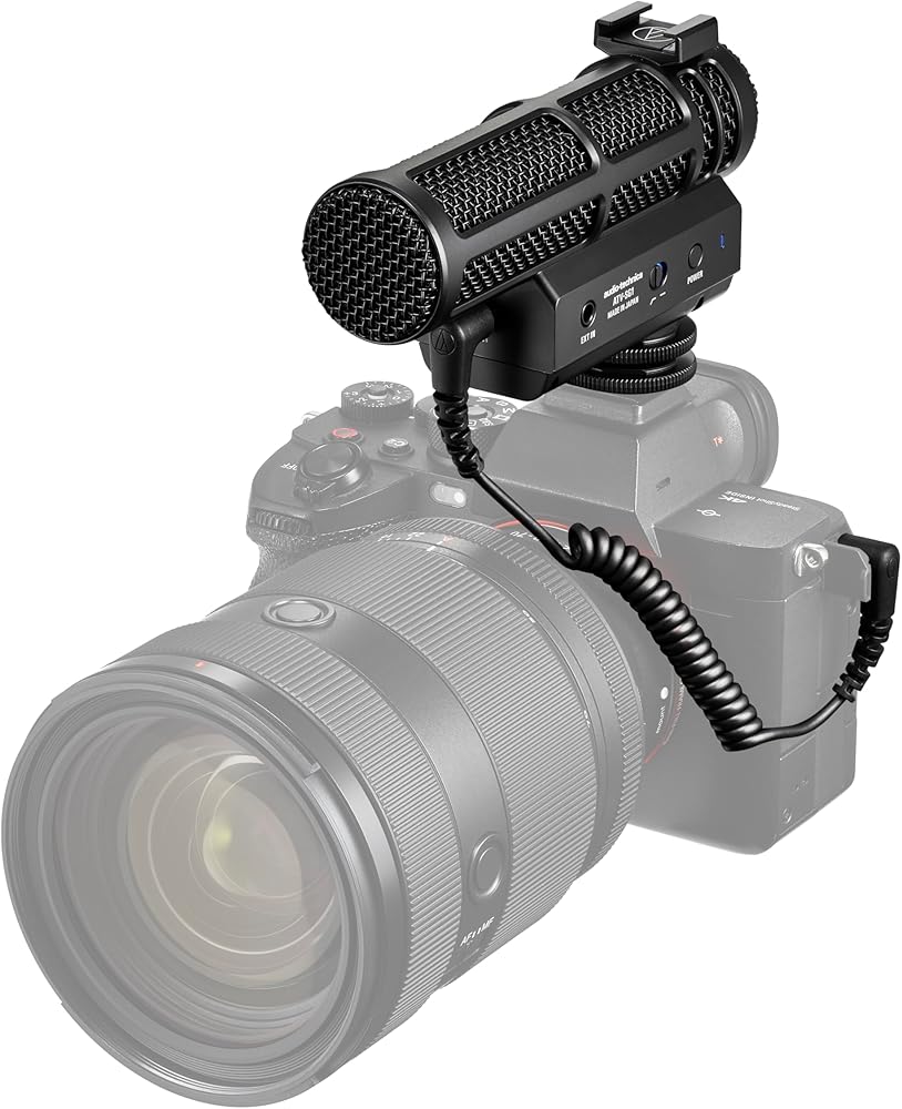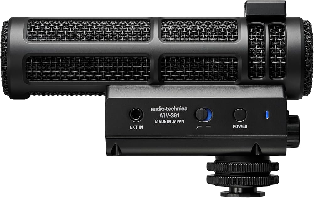 Built for professional videographers and content creators, the ATV-SG1 on-camera shotgun microphone delivers natural, high-resolution audio from a feature-rich, easy-to-use device. The compact mic, which adopts the solid-mesh style of Audio-Technica's classic 20 Series, is designed for use with DSLR, mirrorless SLR, and other cameras. The ATV-SG1 boasts a highly directional 100 mm acoustic tube to keep pickup focused on the sound source while blocking unwanted background noise. Like the 20 Series mics, the ATV-SG1 provides professional-quality sound for lifelike reproduction of the human voice and other sources. Key to this natural, high-resolution sound capture is the mic's newly designed 14 mm large-diameter diaphragm, which exhibits high-sensitivity and low-noise characteristics for rich, detailed audio. In addition, the mic's integrated shock mount dissipates unwanted handling noise from camera movement and vibrations, while Audio-Technica's patented noise-immunity technology prevents the mic from picking up any annoying hum from nearby smartphones or other electronic devices.