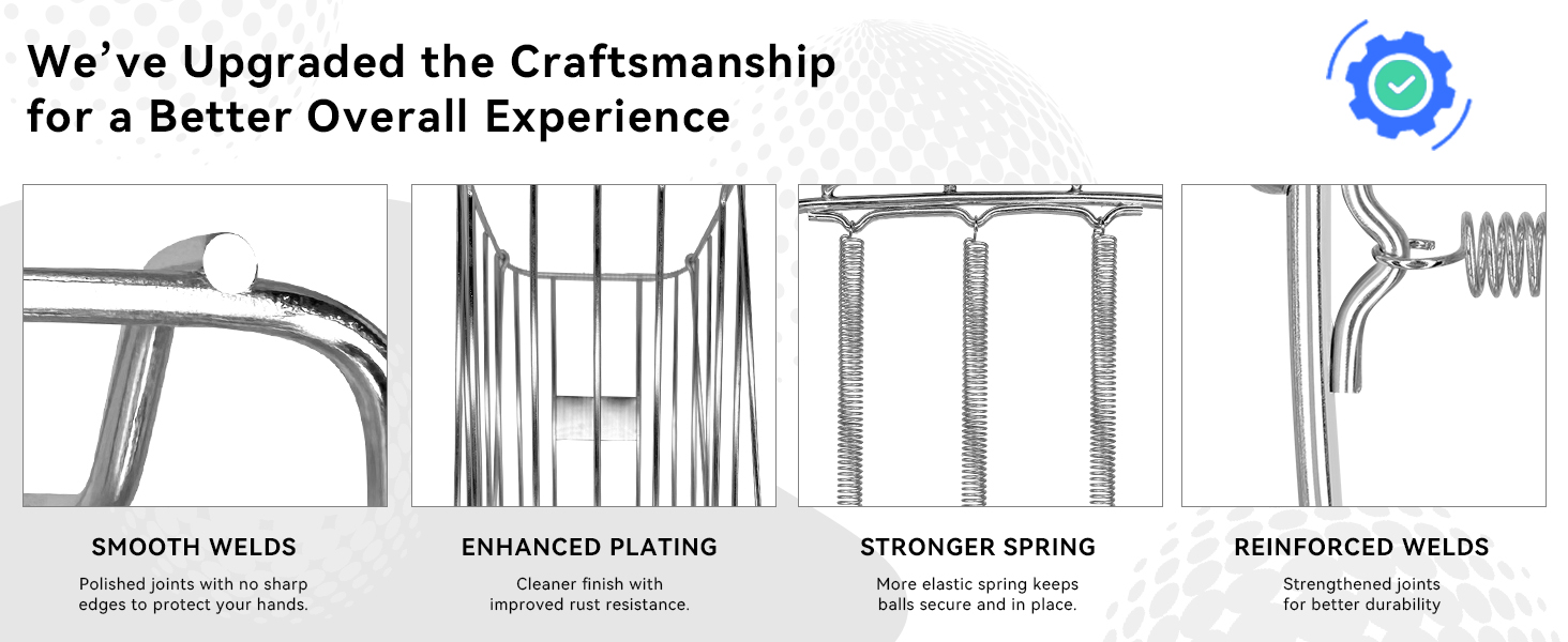 HIGH-STRENGTH SPRING: Featuring a high-strength spring mechanism, this golf ball basket securely grasps each ball while providing smooth, effortless operation. The spring is designed to maintain its strength over time, ensuring reliable performance with every use, so your balls stay securely in place during transport.