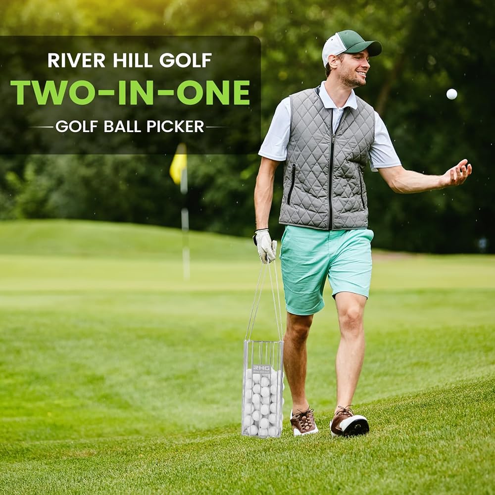 TWO-IN-ONE DESIGN: This golf ball picker combines two functions in one tool: it acts as both a picker and a convenient ball basket. You can easily collect balls from the ground and store them in the basket, reducing the need for additional equipment and making the process more efficient.