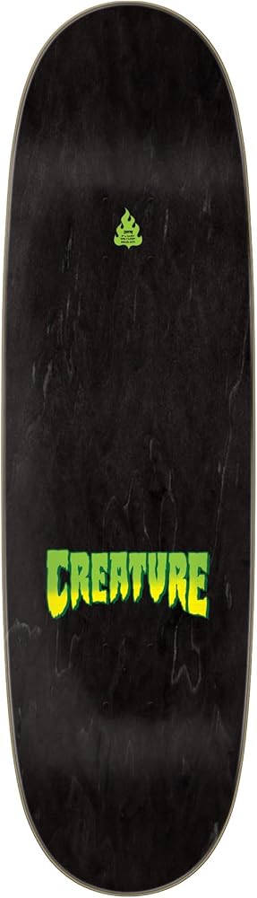 The Creature Logo Spray deck is 9.00in x 32.00in and features 7 ply 100% North American maple, ATV concave and a 13.875in wheelbase.