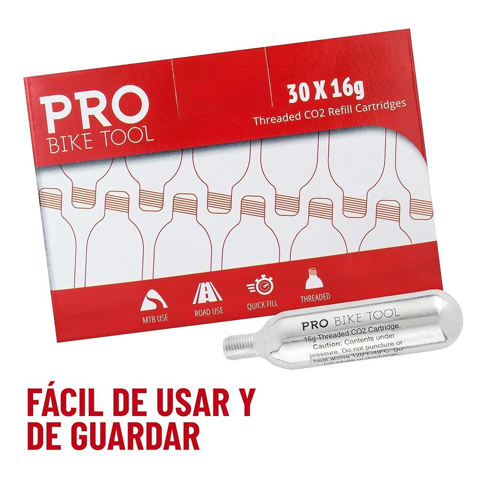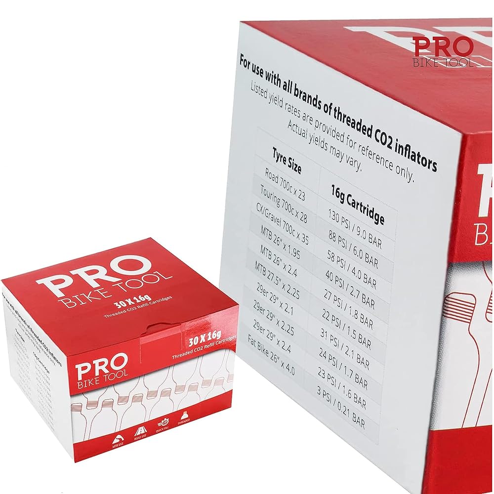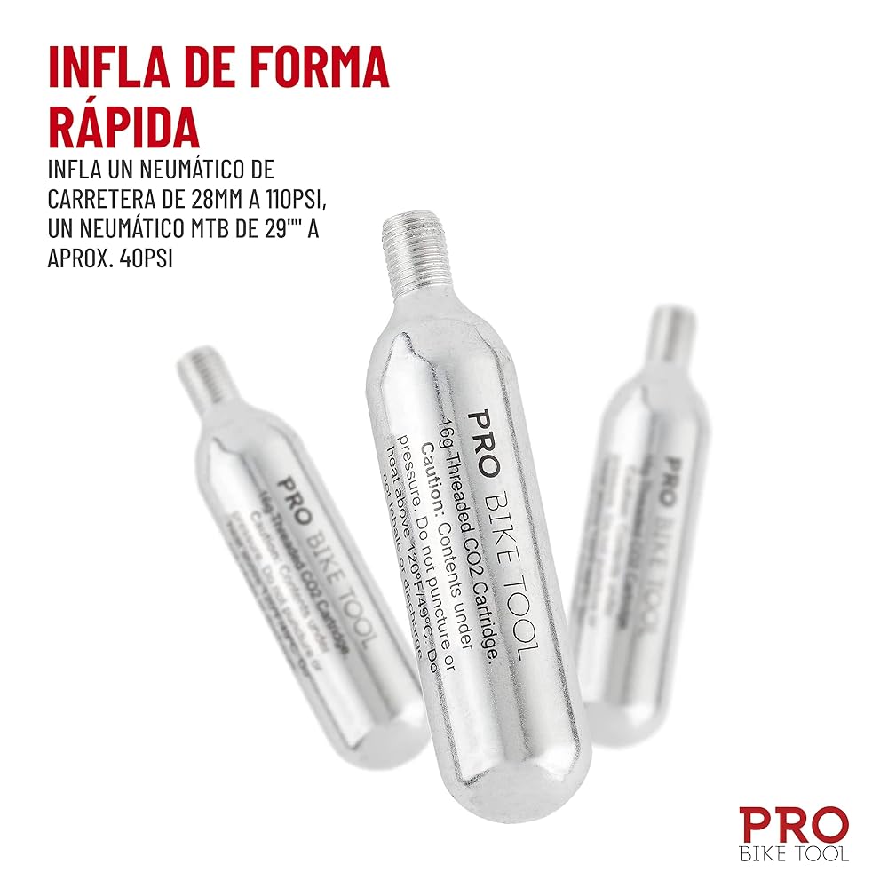 PRO BIKE TOOL CO2 cartridges / refills fits conveniently in a saddle bag, jersey pocket or backpack, weighing only 2 ounces / 58 grams each, you will barely notice you're carrying one as you ride.