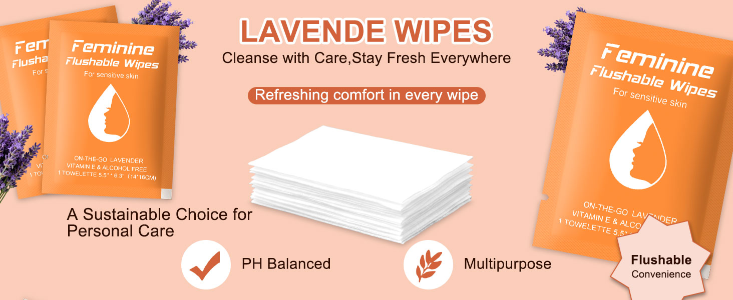 Healthy ingredients: feminine wipes sensitive skin is made of non-woven fabric,EDl pure water,plant extract essence,lavender essence,glycerin,vitamin E,feminine wipes flushable are used for intimate care,gentle and effective,feminine Flushable wipes ensure a gentle,non-irritating clean,free of pungent smells and chemicals.Let's enjoy the natural comfort of the feminine wipes, removed odors and dirt.
