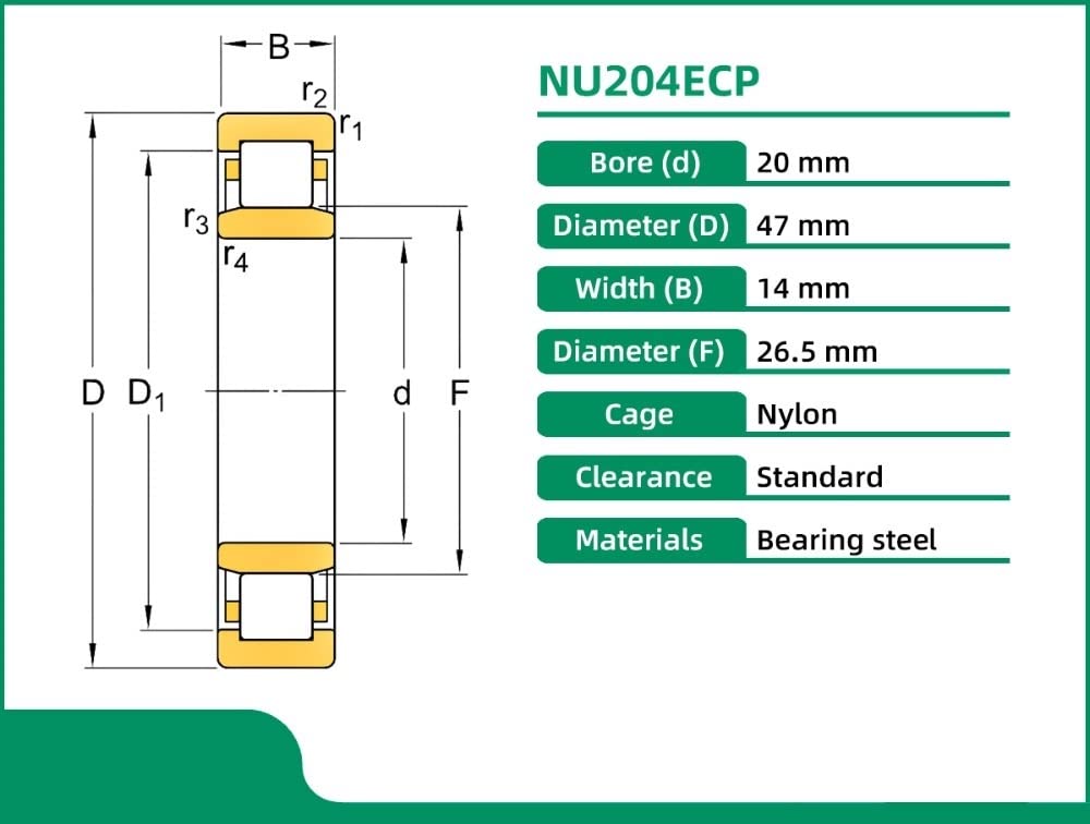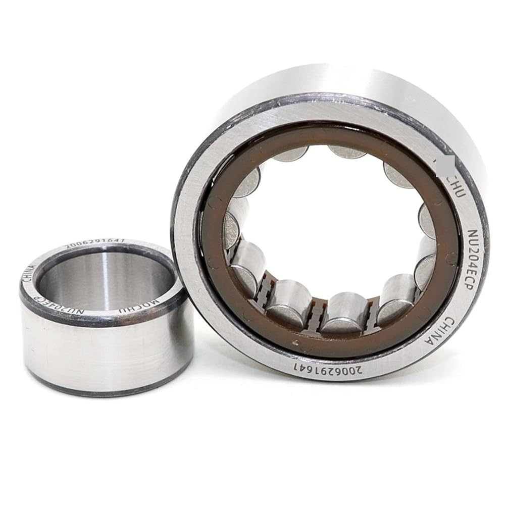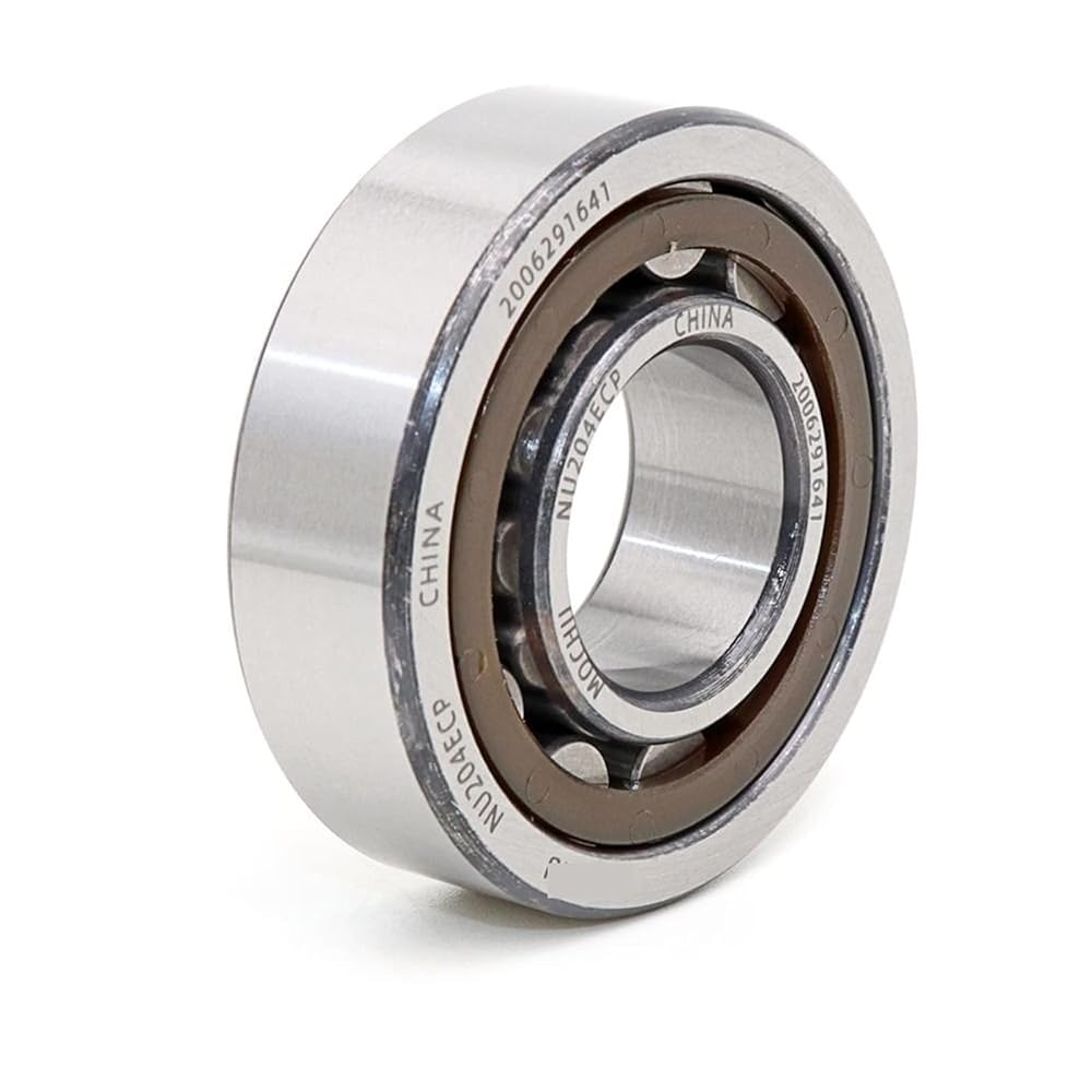 NU design bearings have two integral flanges on the outer ring and no flanges on the inner ring. These bearings can accommodate axial displacement of the shaft relative to the housing in both directions.
