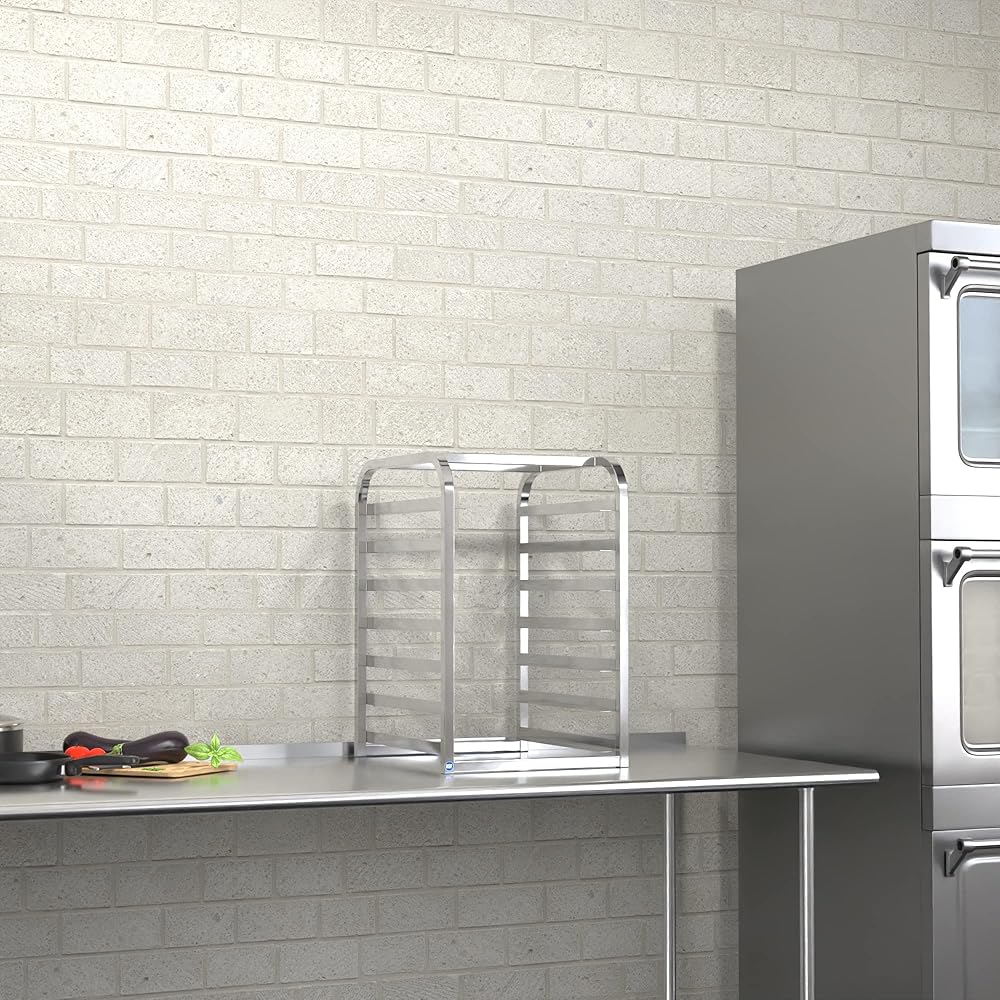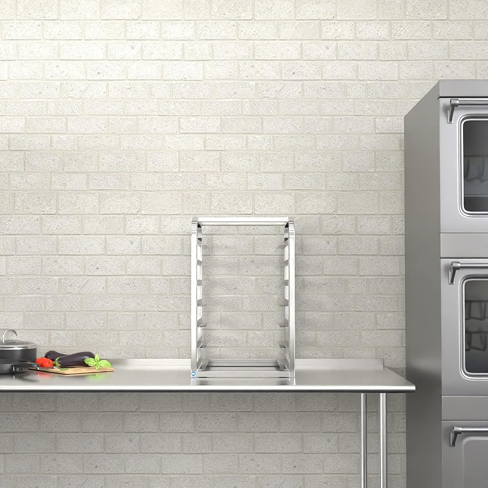 [Storage Capacity] This rack can hold 7 half size sheet pans. It can support up to 30 lb. per pair of slides and up to 150 lb. total. Each set of slides are spaced 3" apart, which means there will be plenty of room for your treats to cool properly.