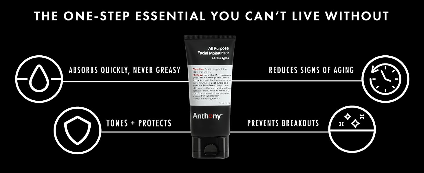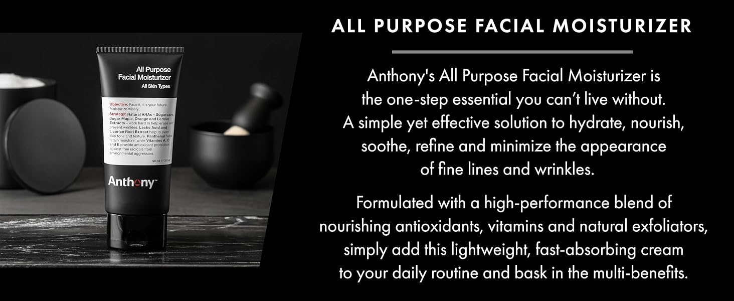 Anthony All-Purpose Facial Moisturizer – Men’s Hydrating Lotion for Dry Skin – Lightweight, Non-Comedogenic, Anti-Aging Formula – 3 Fl Oz in Kuwait
