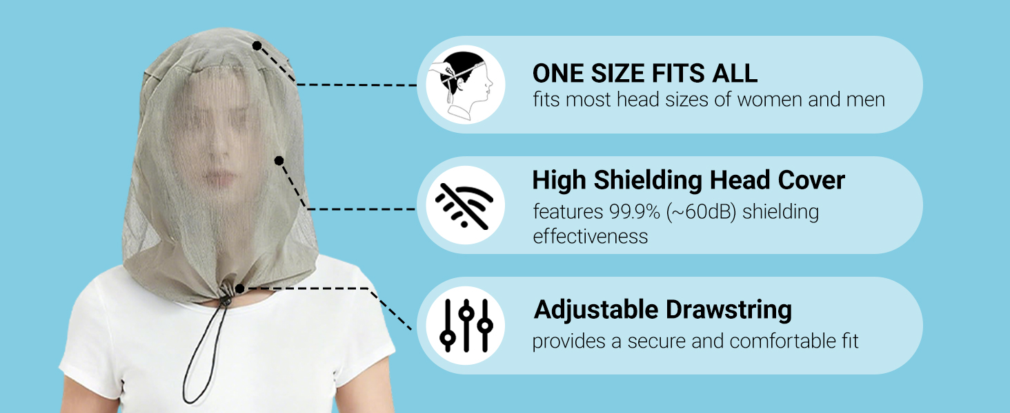 • All-Round Signal Shield: Keep you safe from everyday signals. The head cover's silver mesh blocks 5G, Wi-Fi, and other emissions, creating a personal protective shield