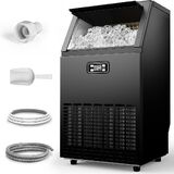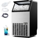 High-Performance Ice Production: This cube ice maker generates 45 crystal-clear ice cubes per batch in just 15 minutes, achieving an impressive daily output of 100 lbs. With a 33 lbs storage bin, it guarantees a consistent supply for bustling cafes, bars, and large events. The industrial-grade machine includes a water outlet hose and an inlet hose for flexible installation and straightforward water drainage.