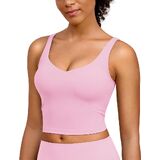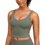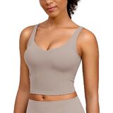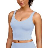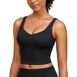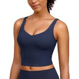 Flattering fit: This longline sports bra combines a flattering V-neck design for enhanced coverage with the practical support of a built-in shelf bra. The removable pads let you customize the fit and support to your preference