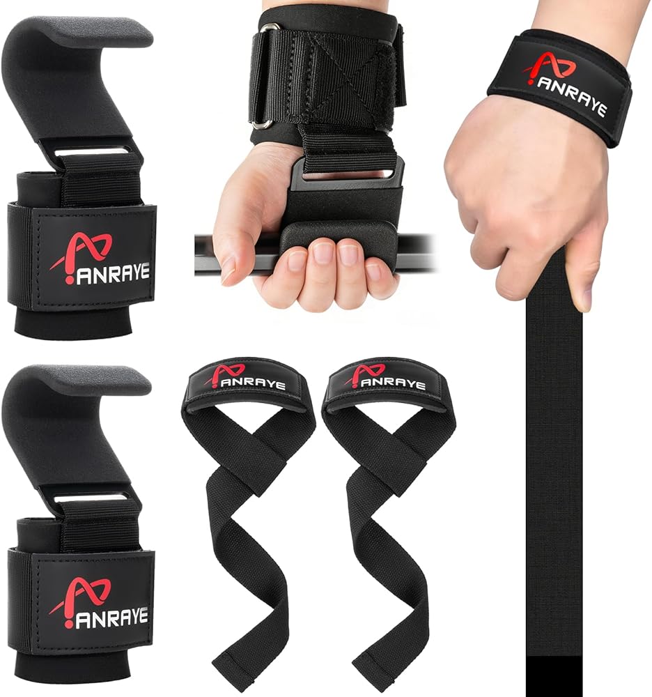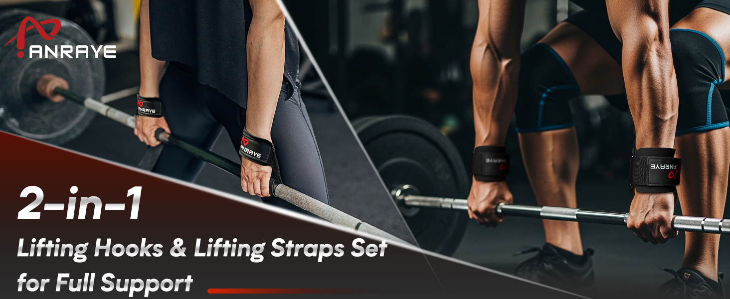 𝟐-𝐢𝐧-𝟏 𝐖𝐞𝐢𝐠𝐡𝐭 𝐋𝐢𝐟𝐭𝐢𝐧𝐠 𝐇𝐨𝐨𝐤𝐬 & 𝐖𝐫𝐢𝐬𝐭 𝐒𝐭𝐫𝐚𝐩𝐬 𝐒𝐞𝐭: 2-in-1 lifting hooks and wrist straps for weightlifting offer strong grip and wrist stability; ideal for deadlifts, rack pulls, lat pulldowns; no need for separate gym accessories, save space and cost