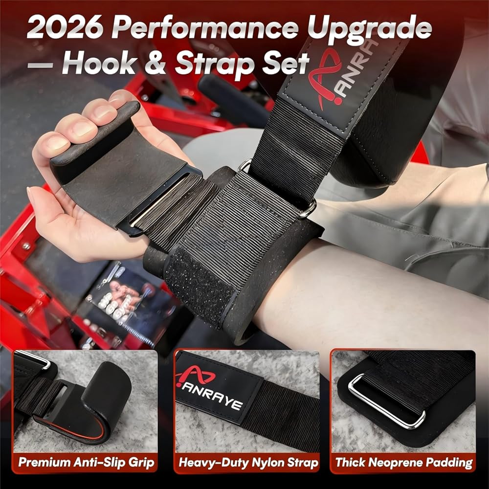 Weight Lifting Hooks & Wrist Straps Set – Lifting Hooks with Anti-Slip Grip, Adjustable Wrist Wraps for Weightlifting, Deadlifts, Powerlifting, Gym Straps for Men and Women, Black-Red