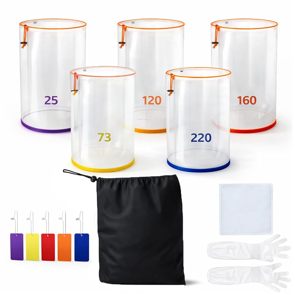【Everything You Need Included】 5 filter bags (5 sizes) + 5 recording cards + 10 disposable gloves + 1 black storage pouch + 1 sealing cloth. The storage pouch keeps your bags organized and protected from dust. Recording cards help track which micron size works best for each application.
