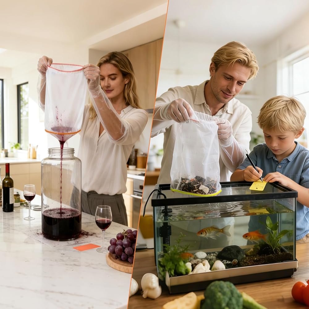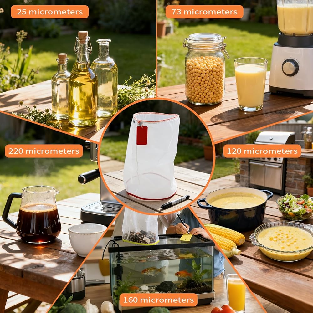 【From Kitchen to Garden】Perfect for: 1) Cold brew coffee enthusiasts (filter coffee grounds without sediment), 2) Tea lovers (strain loose leaf tea), 3) Home juicers (remove fruit pulp), 4) Hydroponic gardeners (filter nutrient solutions), 5) Aquarium owners (clean water), 6) Pet owners (filter pet food).